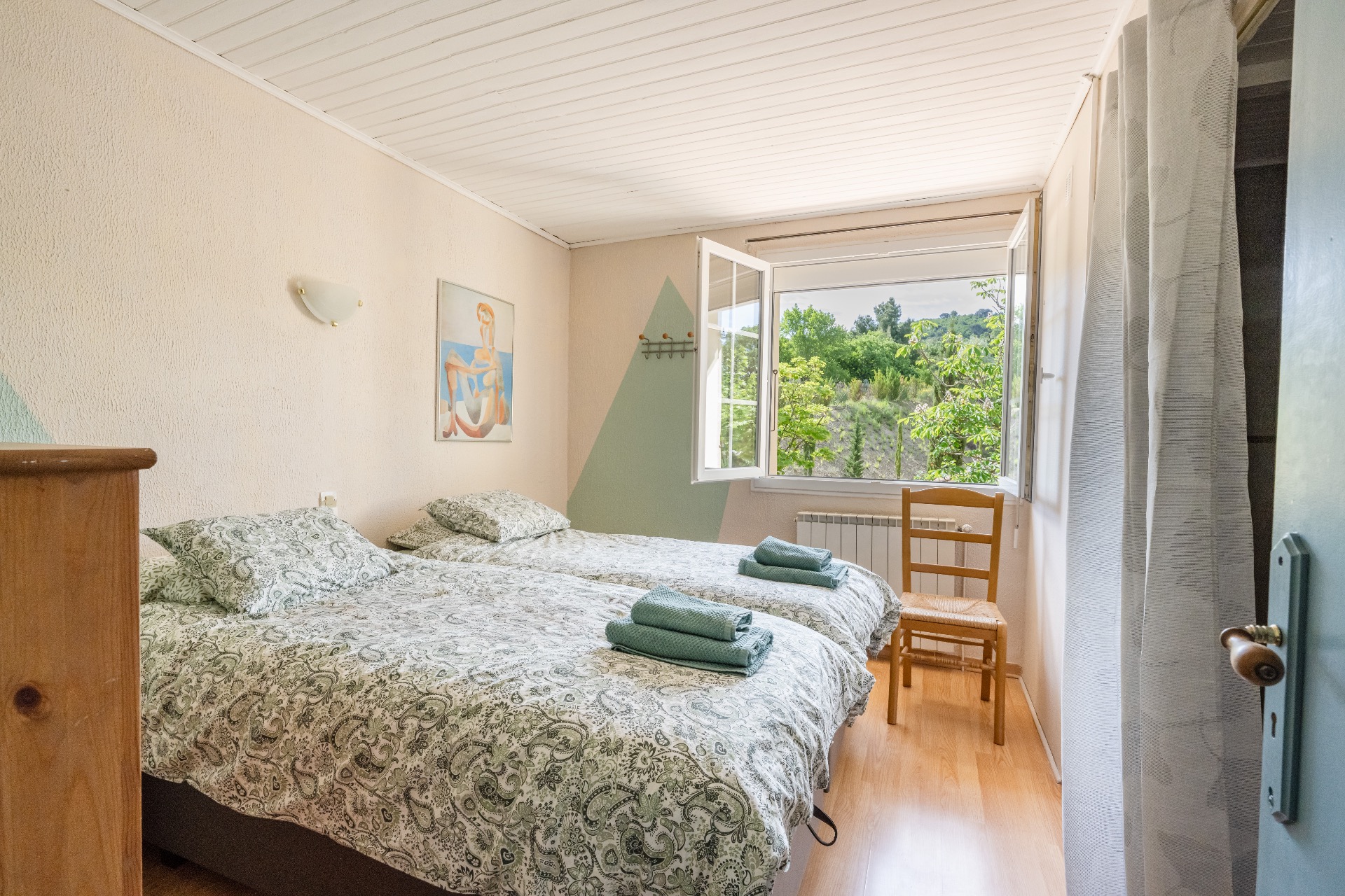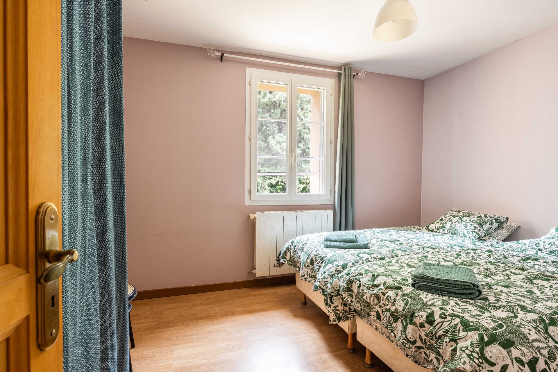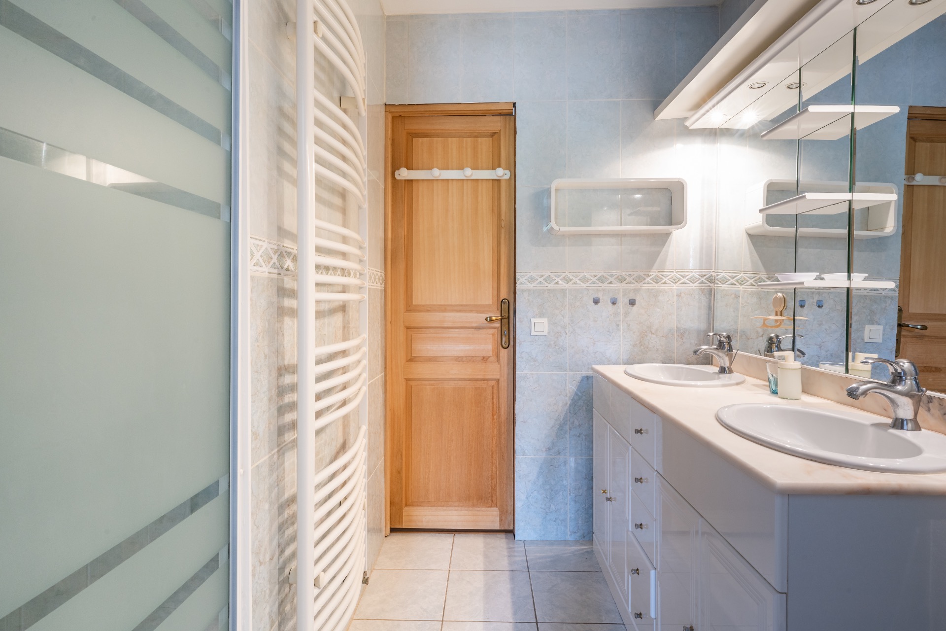 Deze kamer deelt een badkamer met kamer Cyprès dat vanuit beide kamers toegankelijk is (douche + lavabo's). In de hal naar de kamers bevindt zich een apart toilet.