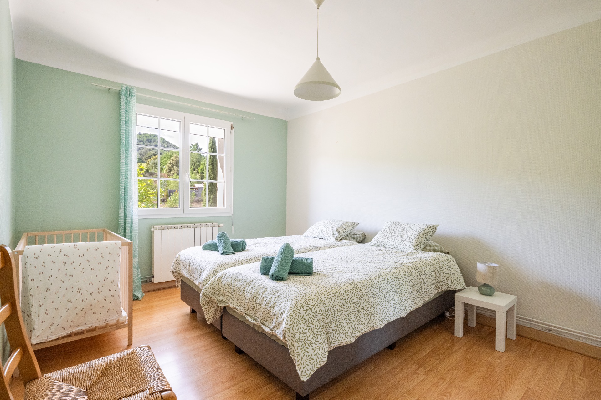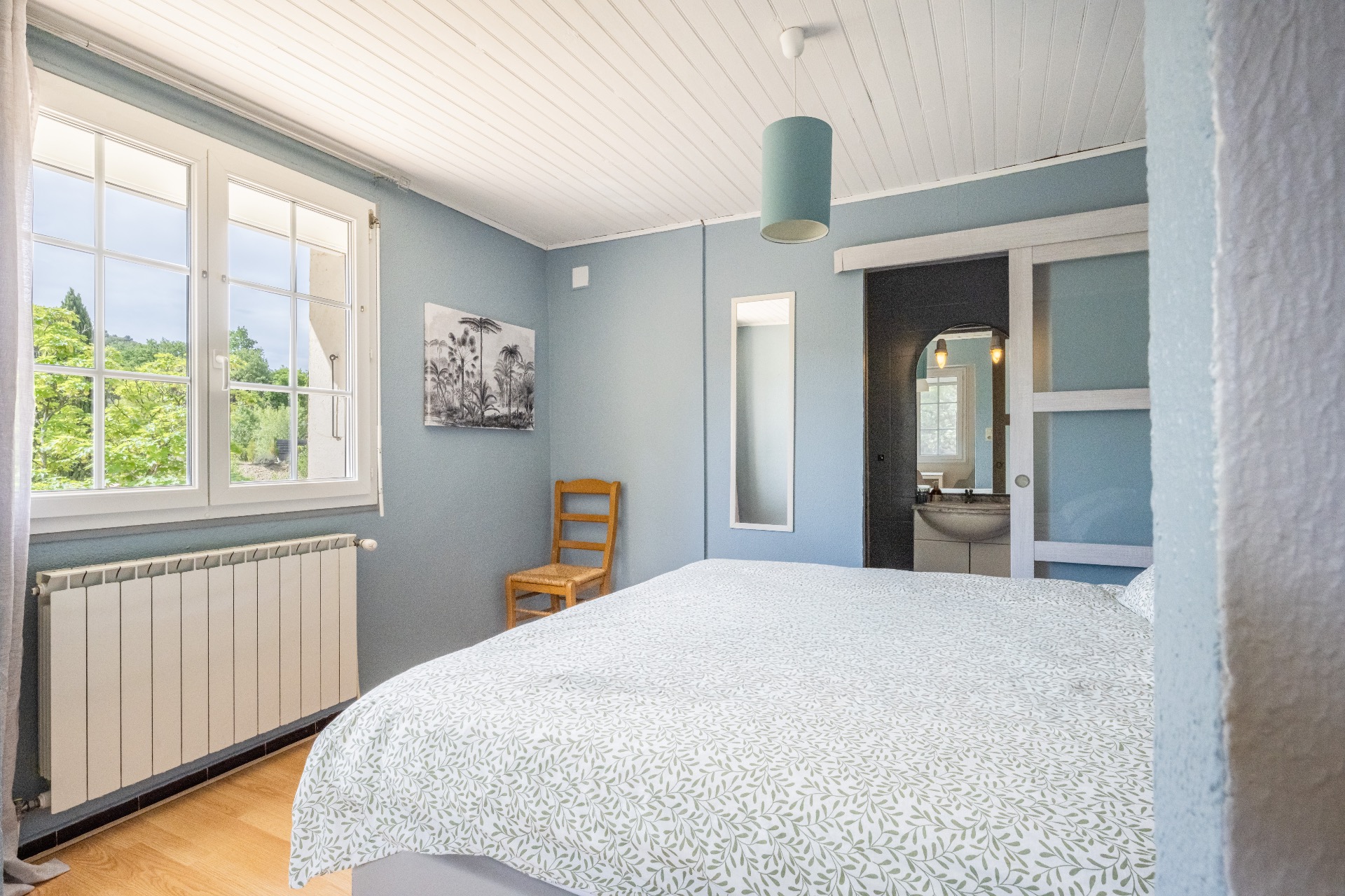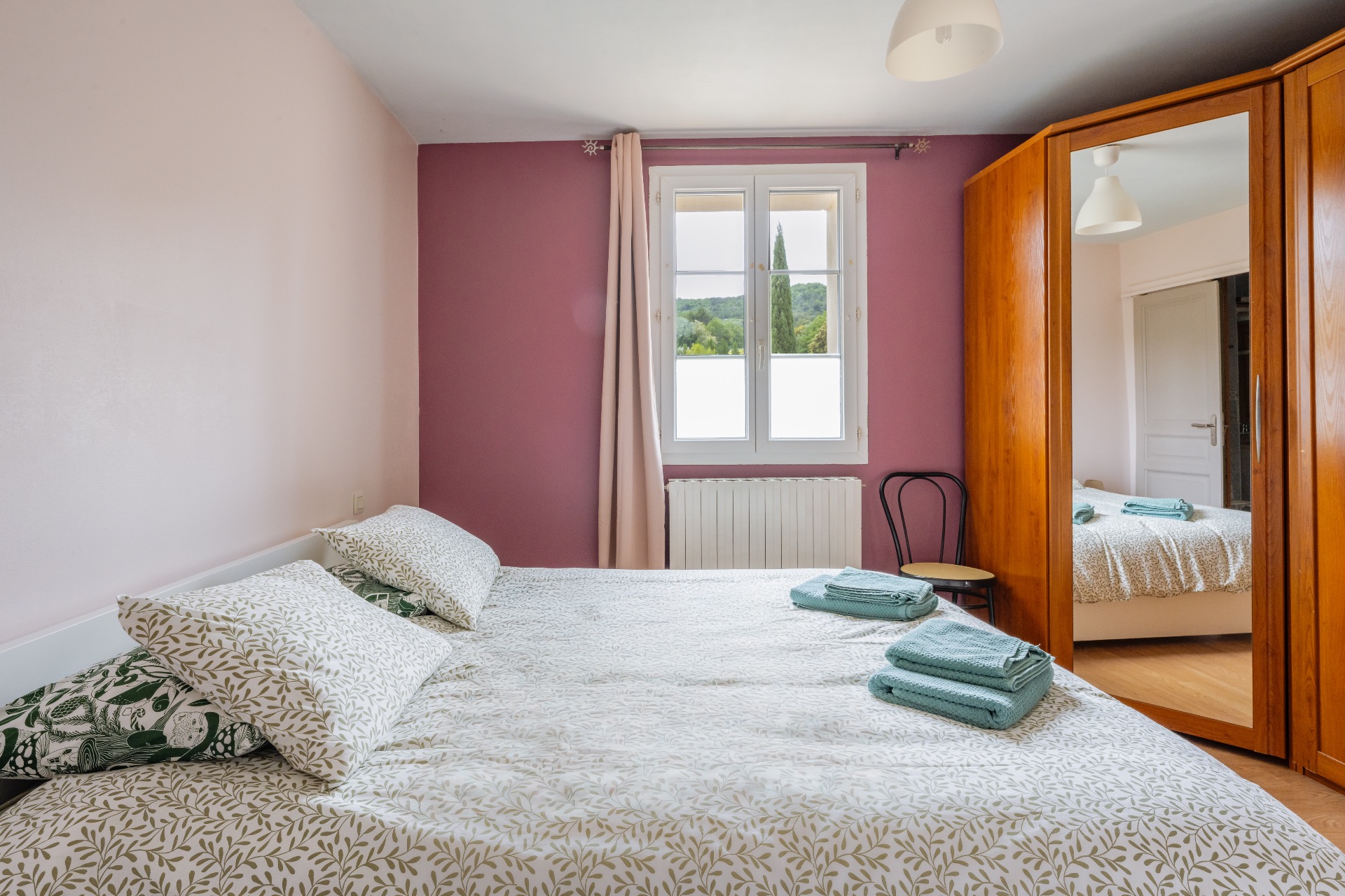 Deze kamer deelt een badkamer met kamer Cyprès dat vanuit beide kamers toegankelijk is (douche + lavabo's). In de hal naar de kamers bevindt zich een apart toilet.