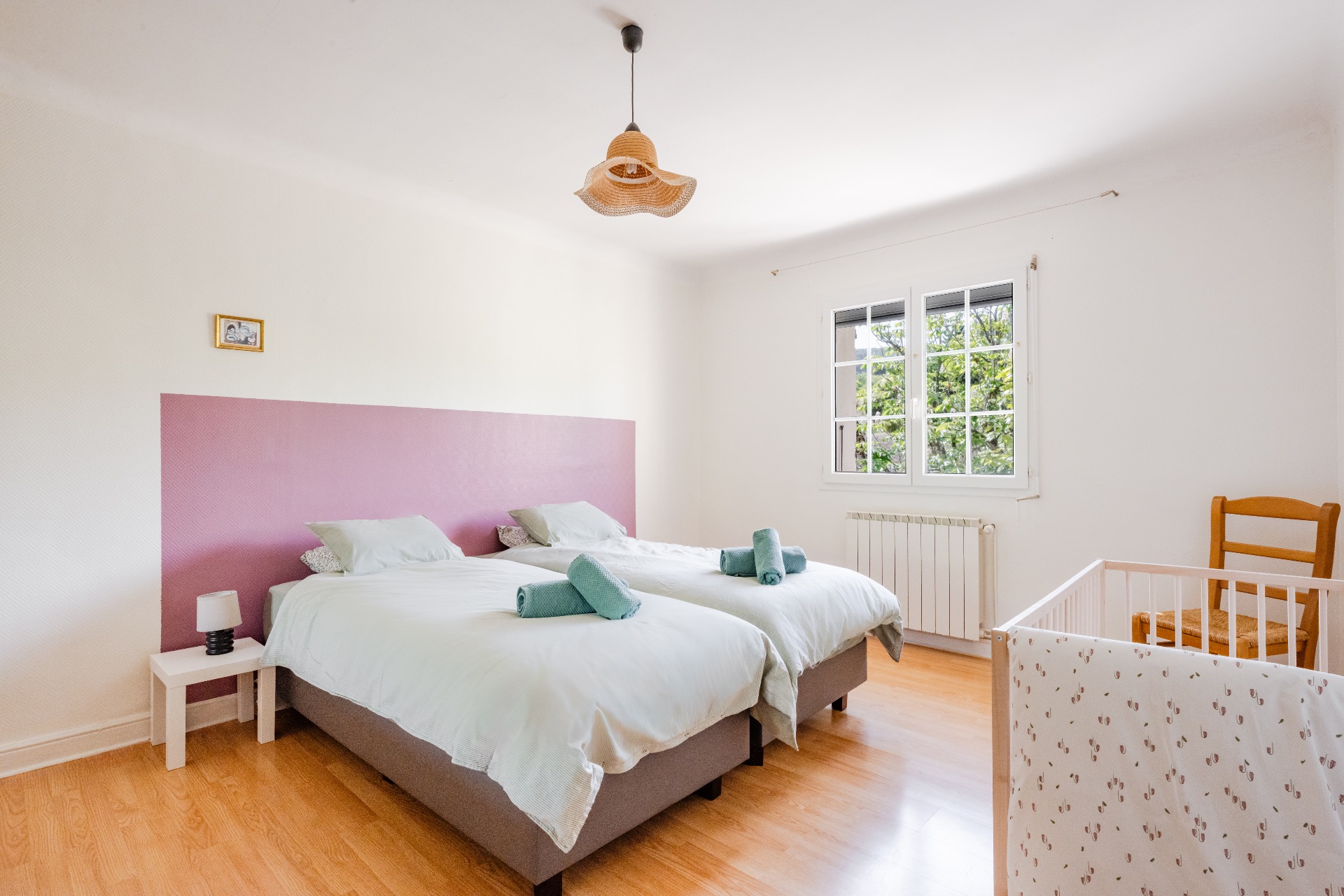 2 bed-eenheden van 90x200cm + badkamer (douche, lavabo, toilet)